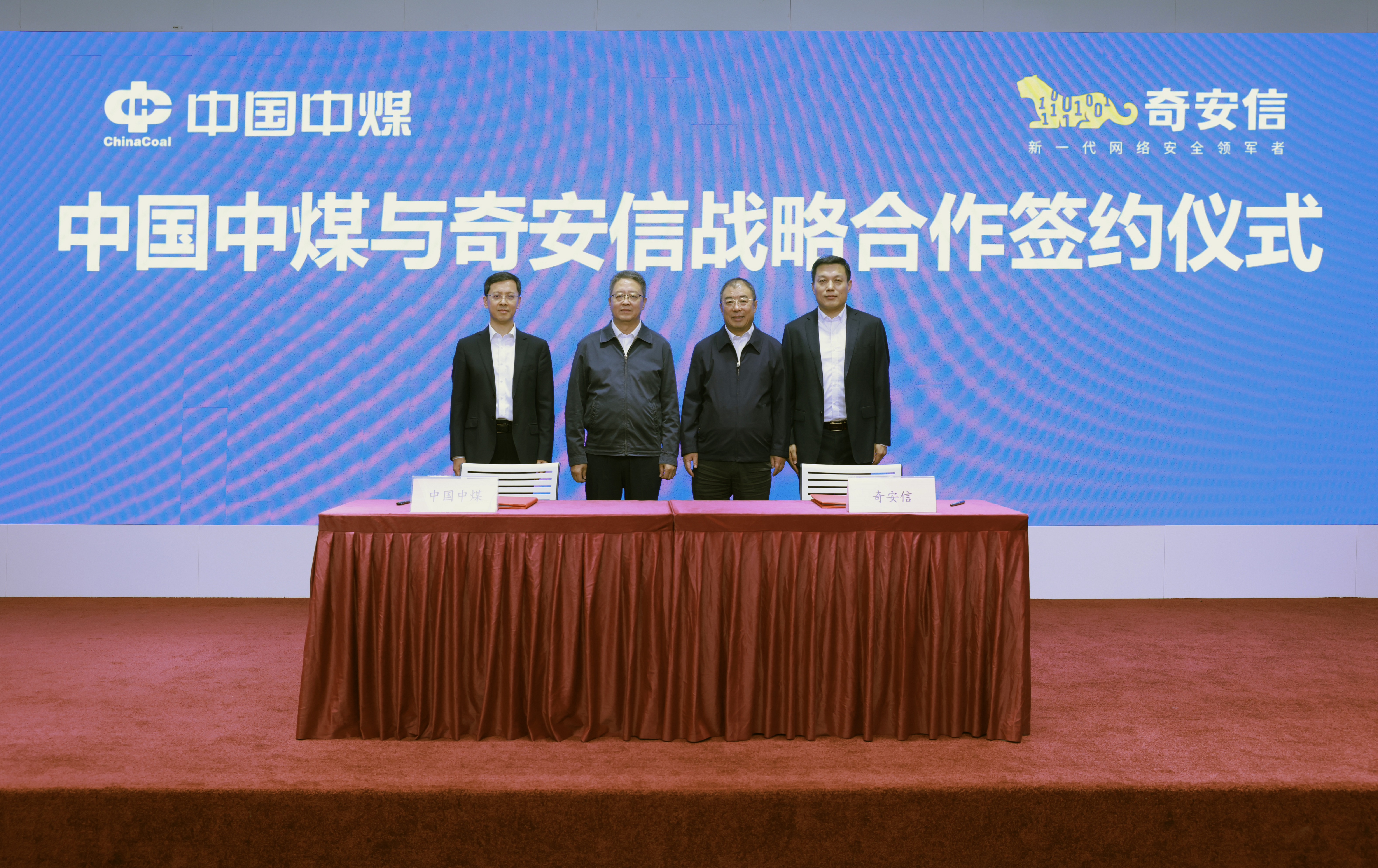 10月9日,中國中煤與奇安信集團在京簽署戰略合作協議。中國中煤黨委書記、董事長王樹東與奇安信集團黨委書記、董事長齊向東舉行工作會談并見證簽約。中國中煤黨委常委、副總經理倪嘉宇,奇安信集團高級副總裁吳登峰分別代表雙方簽署協議。奇安信集團副總裁唐皓參加活動。
